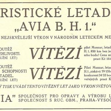 „Letoun Avia BH-1 byl v roce 1920, na První československé mezinárodní letecké výstavě, oceněn dokonce prezidentem republiky T. G. Masarykem finančním darem 100 000 korun. Díky daru a následné státní zakázce na výrobu vojenských letounů, společnost Avia nezanikla,“ říká Marcel Sezemský.
