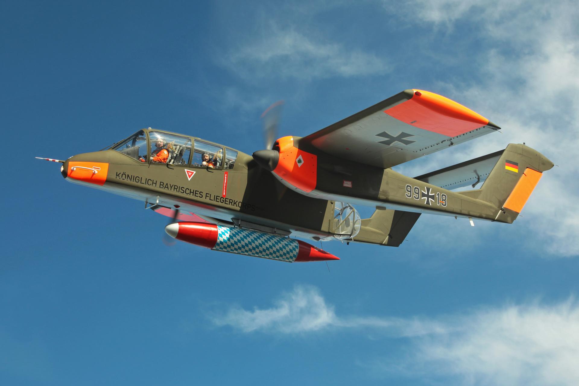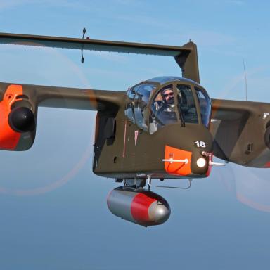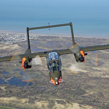 Do Plas letoun dorazí v barvách známé skupiny Bronco Demo Team, který byl skupinou nadšenců založen v roce 2010. Tato organizace se věnuje zachování historického odkazu těchto letounů a jejich prezentace patří k vrcholům leteckých dnů po celé Evropě. Pilot Tony De Bruyn ukazuje vynikající manévrovatelnost, krátké vzlety/přistání (STOL) a obratnost tohoto turbovrtulového stroje, často s využitím kouřových efektů.
