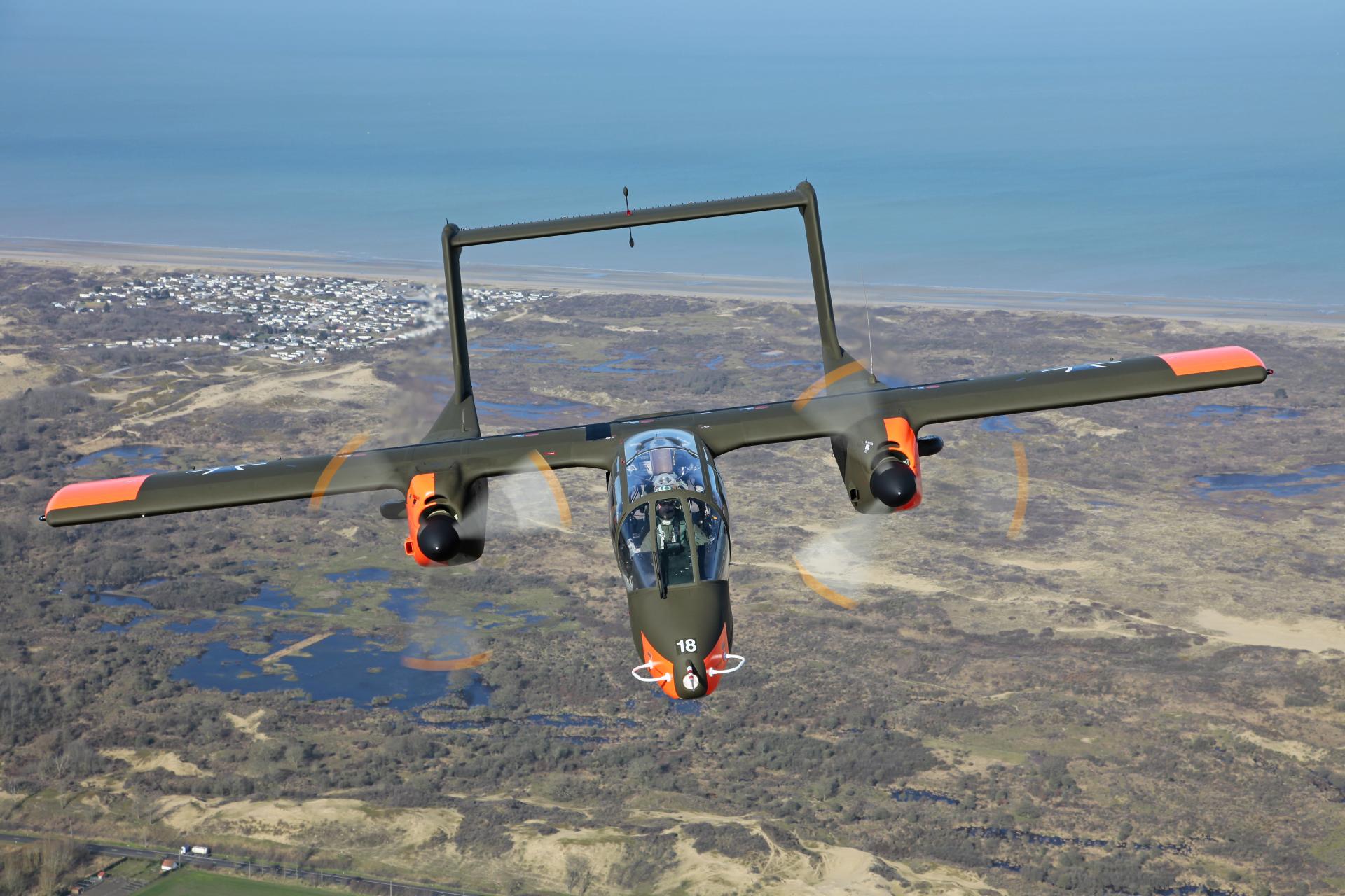 Do Plas letoun dorazí v barvách známé skupiny Bronco Demo Team, který byl skupinou nadšenců založen v roce 2010. Tato organizace se věnuje zachování historického odkazu těchto letounů a jejich prezentace patří k vrcholům leteckých dnů po celé Evropě. Pilot Tony De Bruyn ukazuje vynikající manévrovatelnost, krátké vzlety/přistání (STOL) a obratnost tohoto turbovrtulového stroje, často s využitím kouřových efektů.